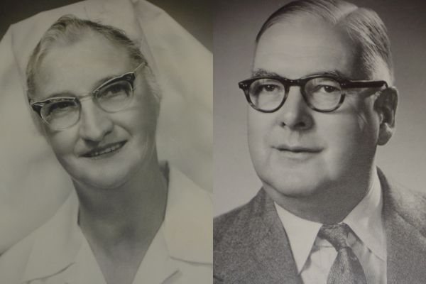Portrait of Matron Clark (left) and Dr Hallowes (right)